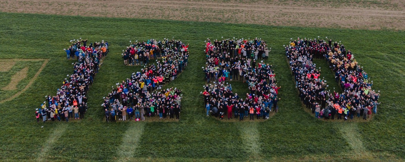 2026 begeht die Gemeinde Reute ihr 1.250-jähriges Bestehen. Im Sommer soll im Ortskern ein großes Festwochenende stattfinden. Zur Einstimmung auf das Jubiläum gab es am Sonntagnachmittag neben dem Schaufeld eine kreative und zugleich verbindende Luftbild-Aktion.