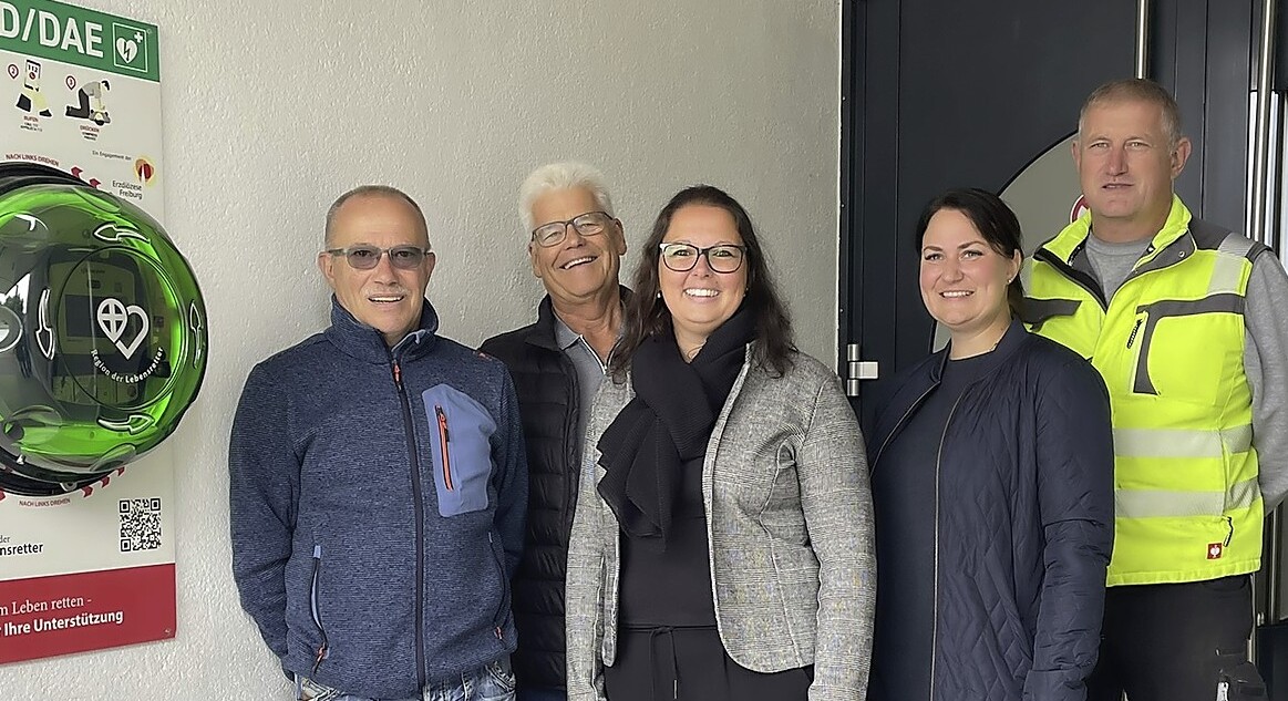 Eschbach. Der neu an der Alemannenhalle in Eschbach angebrachte „Automatisierte Externe Defibrillator“ (AED) wurde offiziell übergeben. Dabei handelt es sich um ein Erste-Hilfe-Notfallgerät, das bei Herzstillstand oder akutem Herzflimmern durch einen Elektroschock das Herz wieder zum Schlagen bringen kann und die Anwender dabei per Sprachsteuerung anleitet.