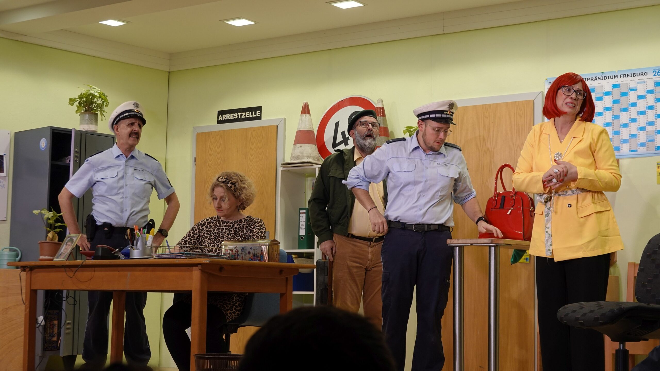 Niederrimsingen. Mit „Polizeiwache 007 – Posten Attila Süd“, der spritzigen Krimikomödie nach Beate Irmisch, hatte die Trachtenkapelle Niederrimsingen zu ihrem jährlichen Theatererlebnis in den Gemeindesaal eingeladen. Unter der Regie von Michael Gippert erwachte die kleine, chaotisch-gemütliche Wache 007 auf der Bühne zu neuem Leben.