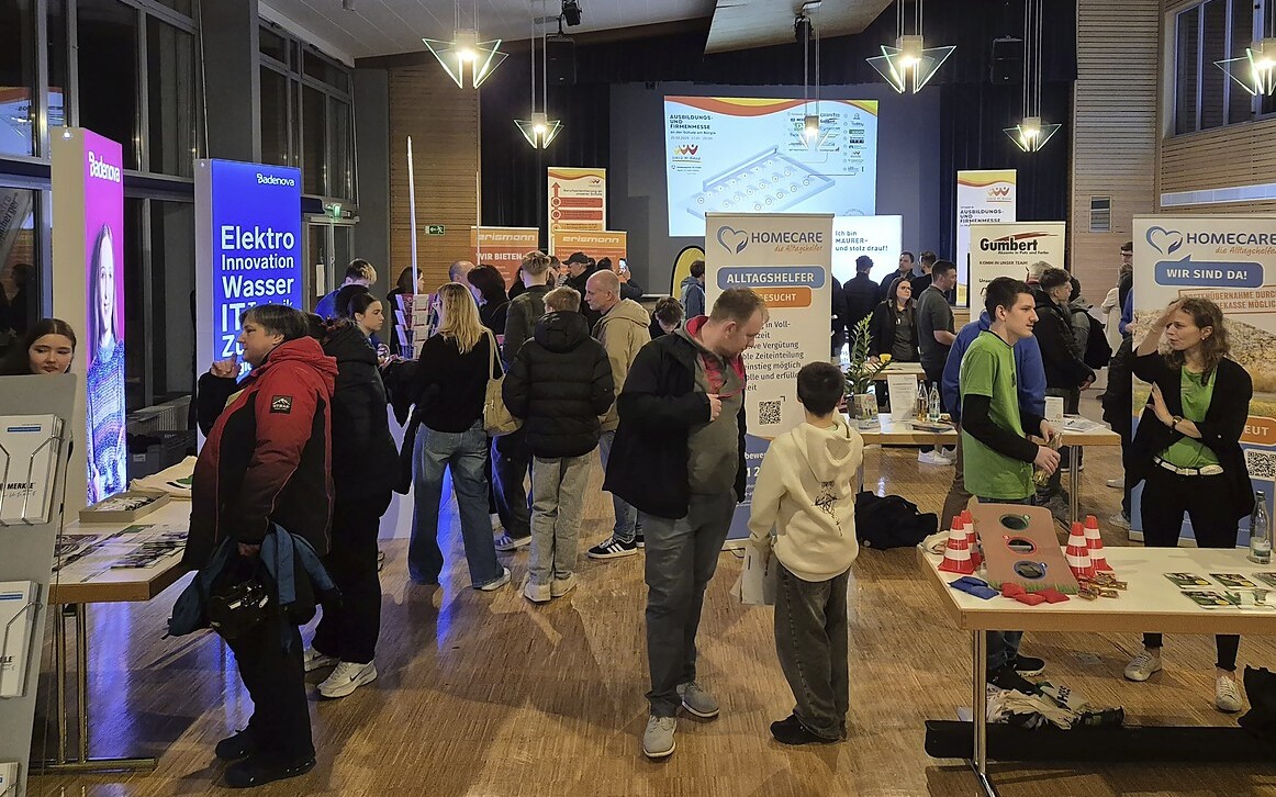 Die Schüler hätten sich intensiv auf die Messe vorbereitet, erklärte Schulleiterin Elke Hofmann. „Was uns auch ganz wichtig war: Die Jugendlichen sollten sich trauen und von sich aus ins Gespräch gehen.“ Schon bald nach Eröffnung der Messe hatte sich die Halle mit Schülern und Erwachsenen gut gefüllt.