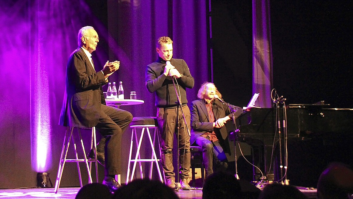 G’schwätzt, wurde über Gott und die Welt, auch über Badenweiler.“ Gibt es schon Interessenten für das Hotel, schräg gegenüber?“ Der Entertainer sah Potenzial für bezahlbaren Wohnraum. „Man muss ja nehmen wen man kriegt“. Im Grunde kann Schmidt adhoc über jedes Thema plaudern und hätte den Abend locker alleine gestemmt. Amüsante Erlebnisse auf Kreuzfahrtschiffen, isländische Schriftsteller und private Anekdoten sorgten unentwegt für Lacher und Applaus. Die Mutter war eine geborene „Reichsbahn“, verriet Schmidt: „Zumindest stand das auf unseren Handtüchern.“ Auf Elternabenden sei er übrigens der einzige Vater ohne Dutt und ohne Zehenschuhe.